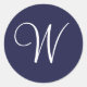 Sticker Rond Monogramme W, blanc sur bleu marine,