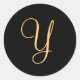 Sticker Rond Monogramme Y, couleur or Y initial sur le noir,