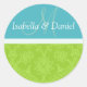 Sticker Rond Monogrammes De Mariée Et De Pièce Bleue Et Verte