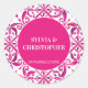 Hot Pink magenta Espagnol Mexicaine Talavera tuiles élégant mariage monogramme imprimé autocollants modèle, couleurs vives audacieuses moderne Mexicaine Espagnol Hacienda style mariage coloré autocollants pour enveloppes ou faveurs avec les noms de mariée et mariée