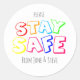 Un rappel pour que vos proches restent en sécurité, positifs et en santé, la meilleure façon d'envoyer un message à ceux qui vous tiennent vraiment à coeur en ces temps difficiles. Les aider à gérer la vie avec la pandémie, la distanciation sociale et la quarantaine. Un message Stay Safe en s'amusant, positif et coloré arc-en-ciel sur un arrière - plan blanc. Les noms et les messages écrits en script gris sont facilement customisés à ceux de votre choix.