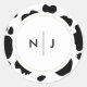 Sticker Rond Moo Cow Spots Imprimer Mariage noir et blanc
