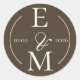 Sticker Rond Moody Coffee Ivory Monogram Date Wedding