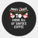 Sticker Rond Most Likely To Drink All Of Santas Coffee Snowman