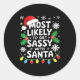 Sticker Rond Most Likely To Get Sy With Santa Shirt Family Chri