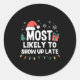 Sticker Rond Most Likely To Show Up Late Christmas Funny Xmas