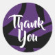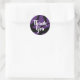 Sticker Rond Motif Abstrait moderne violet et Merci noir