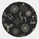 Sticker Rond Motif de Noël mignon simple noir et or