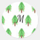 Sticker Rond Motif de Noël simple aquarelle ajouter monogramme