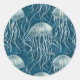 Sticker Rond Motif de poisson marine bleu et blanc gelée
