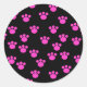 Sticker Rond Motif Empreinte de patte rose et noir.