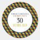 Ces autocollants sont parfaits pour quiconque planifie une fête branchée. Un grand accessoire à utiliser dans votre papeterie de fête. Une idée est de les utiliser comme scellés d'enveloppe, en ajoutant cette touche spéciale à vos invitations ou cartes. Le design se compose d'un arrière - plan design aux motifs géométriques en noir, bleu, orange et jaune avec un cadre décoratif de bordure bleue et est fini avec une formulation modifiable correspondante. Le design simple peut être personnalisé pour convenir à votre événement spécial et sera l'accessoire parfait pour toute fête à thème moderne, y compris : douches nuptiales, fiançailles, wedding showers, fêtes d'anniversaire et bien plus encore.