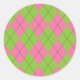 Sticker Rond Motif Jacquard rose et vert avec lignes noires