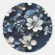 Cette image présente un agencement élégant de fleurs bleues et blanches avec des pétales et des feuilles complexes, créant un effet 3D sophistiqué.