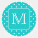 Sticker Rond Motif Polka turquoise et blanc. Monogramme personn