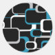 Un amusant motif rétro inspiré de carrés gris, blancs et bleu paon contre un arrière - plan noir sur un autocollant
