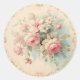 Sticker Rond Motifs gracieux, rose et vert Chic Shabby