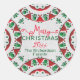 Sticker Rond Motifs Rouges Nordiques Folk Sur Noël Linen