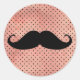 Sticker Rond Moustache drôle sur mignon rose Polka Arrière - pl