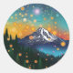 Sticker Rond Mt Rainier w Soirée Starry Sky et Fireflies