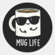 Mug Life Funny Mug Pun présente une mignonne tasse à café qui a l'air d'un cool dans ses lunettes de soleil vivant la vie de la tasse. Un cadeau de jeu de mots parfait pour la famille et les amis qui aiment les mignonettes de tasse de café.