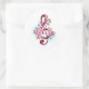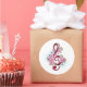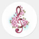 Pink treble clef with delicate, detailed pink Japanese cherry blossoms against white background painted over with light blue paint Blooming pink sakura.