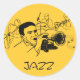 Sticker Rond Musicien JAZZ avec trompette et notes musicales
