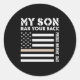 Sticker Rond My Son Has Your Back Proud Marine Dad Usa Flag