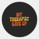 Sticker Rond My Therast Gave Up Funny Retro Quote