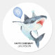 Un thème amusant de requin avec un requin d'aquarelle arborant un casquette de fête et tenant un ballon avec son âge (modifiable). Mignons autocollants amusants et modernes avec des utilisations multipules.