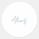 Sticker Rond Name Calligraphy Script Plain Simple White Blue