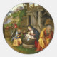 Nativité de Lorenzo Leonbruno da Mantova c1515. La scène de l'agent représente Marie tenant le bébé Jésus pendant que les anges regardent avec des bras repliés. Joli paysage arrière - plan avec ange et bergers approchant la Sainte Famille.