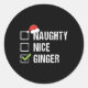 Sticker Rond Naughty Nice Ginger Redhead Santa Hat Irish Christ