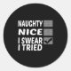 Sticker Rond Naughty Nice I Swear I Tried Funny Christmas