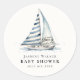 Sticker Rond Nauti-Bouy Blue Stripe Sailboat Baby Shower