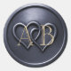 Sticker Rond Navy Blue Two Hearts Intertwined Monogram Wedding
