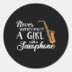 Sticker Rond Ne Sous-Estimez Jamais Un Avec Saxophone