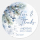 Autocollants de remerciement personnalisés pour cadeaux de douche de mariage hivernale neige en amour, modèle d'autocollants personnalisés avec brindilles de pin enneigées et baies hivernales bleu poussiéreux aquarelle, autocollants personnalisés pour douche de mariage hivernale, fournitures de fête pour douche de mariage hivernale, cadeaux de douche de mariage