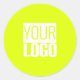Stickers ronds classiques en arrière - plan couleur unie jaune néon et un logo de couverture.Personnalisez-le maintenant. Design moderne et tendance par Alma Wad.