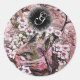 STICKER ROND NEST OISEAU, ARBRE AVEC FLEURS ROSES BLANCHES MONO