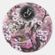 STICKER ROND NEST OISEAU, ARBRE AVEC FLEURS ROSES BLANCHES MONO