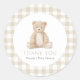Say thank you to baby shower guests with this elegant neutral gingham teddy bear themed round sticker.