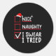 Sticker Rond Nice Naughty I Swear I Tried Christmas