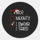 Sticker Rond Nice Naughty I Swear I Tried Christmas List Santa