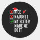 Sticker Rond Nice Naughty My Sister Made Me Do It Merry Christm