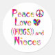 Partagez l'amour pour votre nièce avec ce design coloré avec un signe de paix, le coeur, et les mots Peace Love Hugs and Nieces.