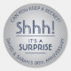 Ajoutez une touche personnalisée élégante pour surprendre les invitations à la fête du 25e anniversaire d'argent, les décorations et les faveurs avec ces stickers bleu marine moderne / enveloppes scellées. Le design présente un arrière - plan en acier inoxydable brossé faux métallique et une typographie d'inspiration art déco vintage tendance avec message personnalisable qui dit "Shhh! C'est une SURPRISE." En option, la typographie courbe stylisée peut être un nom et une adresse à utiliser comme étiquettes d'adresses rondes modernes chic.