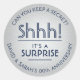 Ajoutez une touche personnalisée élégante pour surprendre les invitations à la fête du 25e anniversaire d'argent, les décorations et les faveurs avec ces stickers bleu marine moderne / enveloppes scellées. Le design présente une fausse feuille métallique argentée arrière - plan et une typographie d'inspiration art déco vintage tendance avec un message personnalisable qui dit "Shhh ! C'est une SURPRISE." En option, la typographie courbe stylisée peut être un nom et une adresse à utiliser comme étiquettes d'adresses rondes modernes chic.