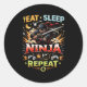 A fierce cartoon ninja slices through explosions beneath the mantra of a gamer’s relentless routine.