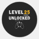 Sticker Rond Niveau 25 Jeu vidéo déverrouillé 25e anniversaire